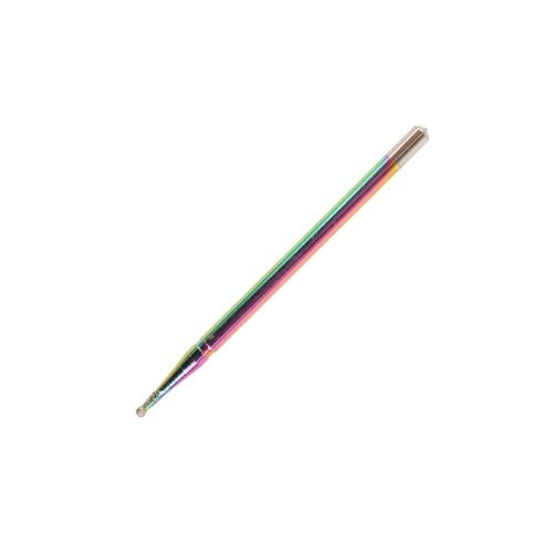 A ponteira é revestida com partículas de diamante de alta qualidade, garantindo uma abrasividade controlada e eficaz para remover suavemente as imperfeições das unhas e polir a superfície para um acabamento brilhante e uniforme. - Design Mini Bola com Efeito Arco-Íris: